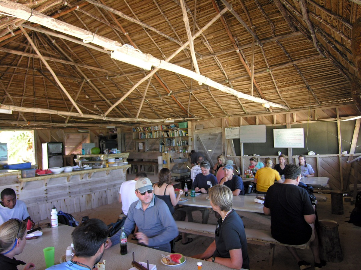 We spend hours in the dining hall; all meals are served here buffet-style (see our island menu). Nightly talks on coral reef, fish identification, tropical weather, pirates of the Caribbean, and other topics also take place here. At night we play games and listen to island music before retiring to our private cabanas.