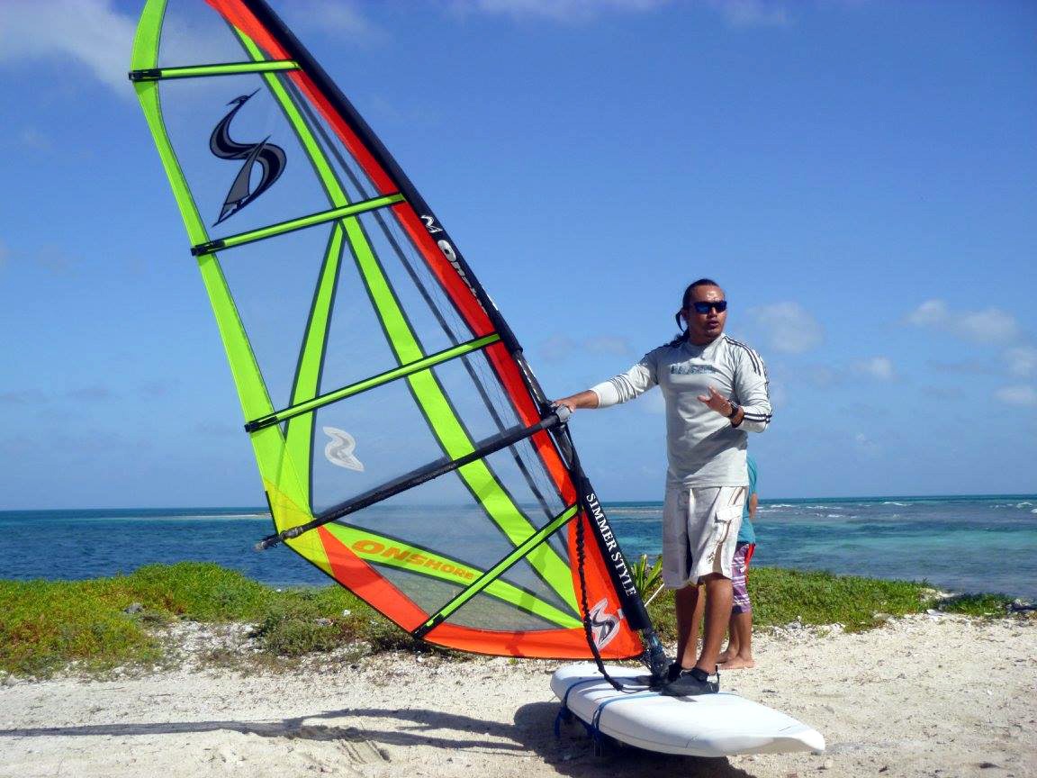 Our private island vacation includes all instruction in every sport except diving and kiteboarding. We have a great program for teaching windsurfing. Our trainer is set up on the beach, right next to the surf palapa. The trainer allows the student to practice basic skills and sail handling before entering the water, greatly accelerating the learning curve and enjoyment of this challenging sport.