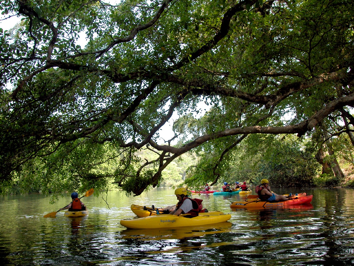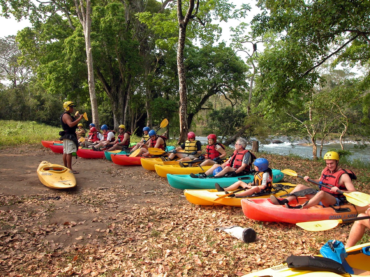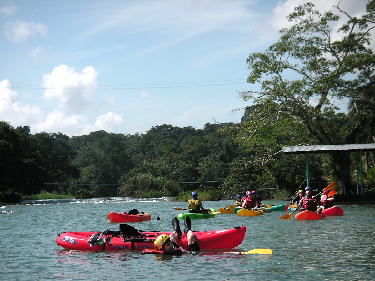 Instruction begins on shore. Once underway down the river, we encounter numerous rapids (Class I and II) with large pools between drops. Passing several villages, we continue to run exciting rapids in our highly-maneuverable kayaks. We learn to surf waves, make eddy turns, and even try some ‘pop-ups’ in the bigger drops. Abundant birdlife is seen along the lush river banks, and huge iguanas perch in the tree branches that overhang the river.