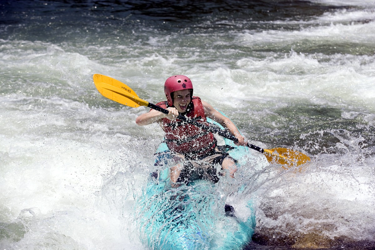 For families: We use whitewater, sit-on-top kayaks for everyone. The youngest person who may paddle themselves in a kayak is a 10 year old.