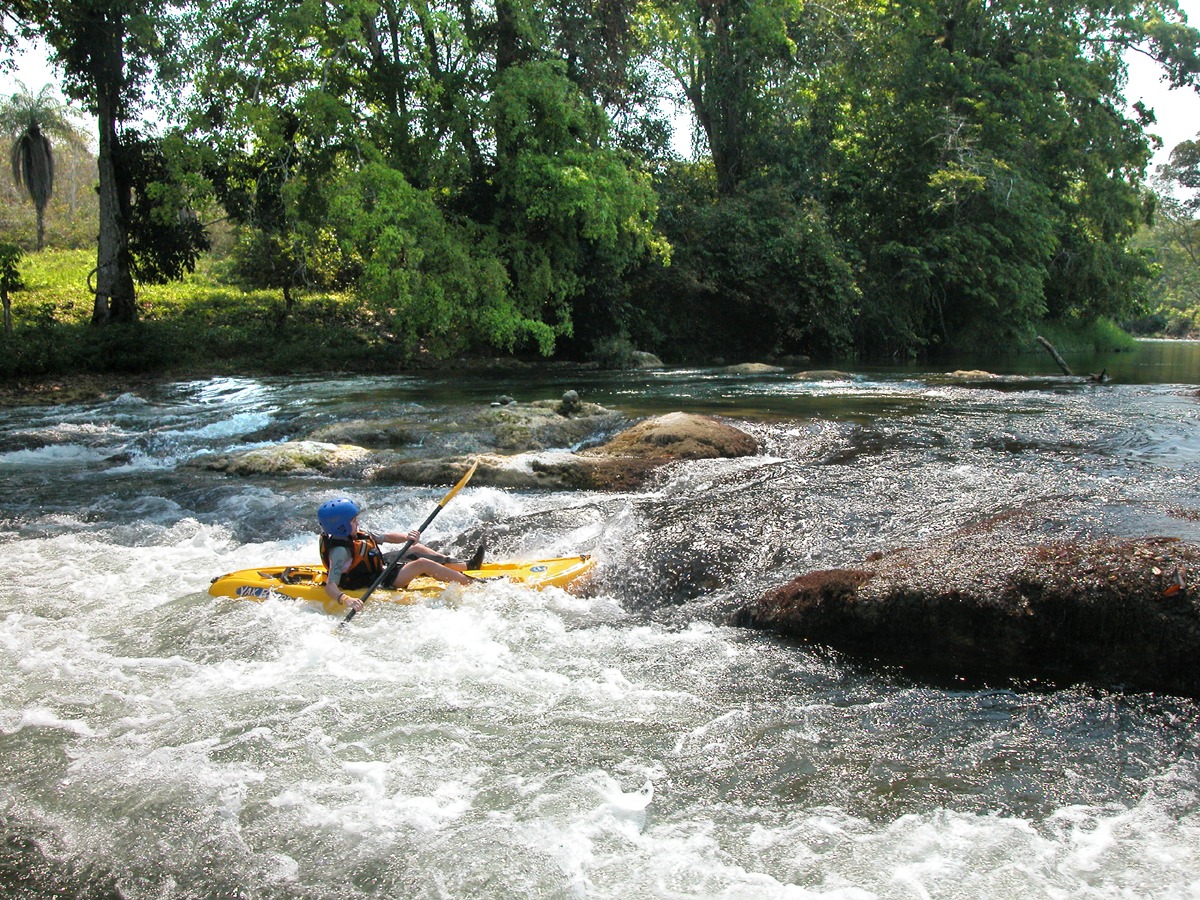 We run the Mopan River as part of our Belize Adventure Week multi-day trip. This full-week adventure tour includes this whitewater trip, along with other activities such as Belize cave kayaking, waterfall rappelling, ziplining, exploring a Mayan ruin, and three days on our private island for sea kayaking, snorkeling, scuba diving, kitesurfing, windsurfing, kayak surfing, sport fishing, kayak fishing, paddleboarding, and board surfing.
