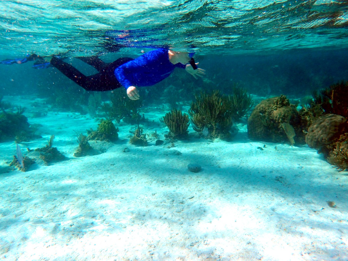 A sport related to snorkeling is free diving. Free diving is simply diving as deep as scuba diving, but while holding your breath. There are many places in Belize where one can free dive to depths of 40 feet or more. The water is clear and warm, and those with a small weight belt can stay down for several minutes safely.
