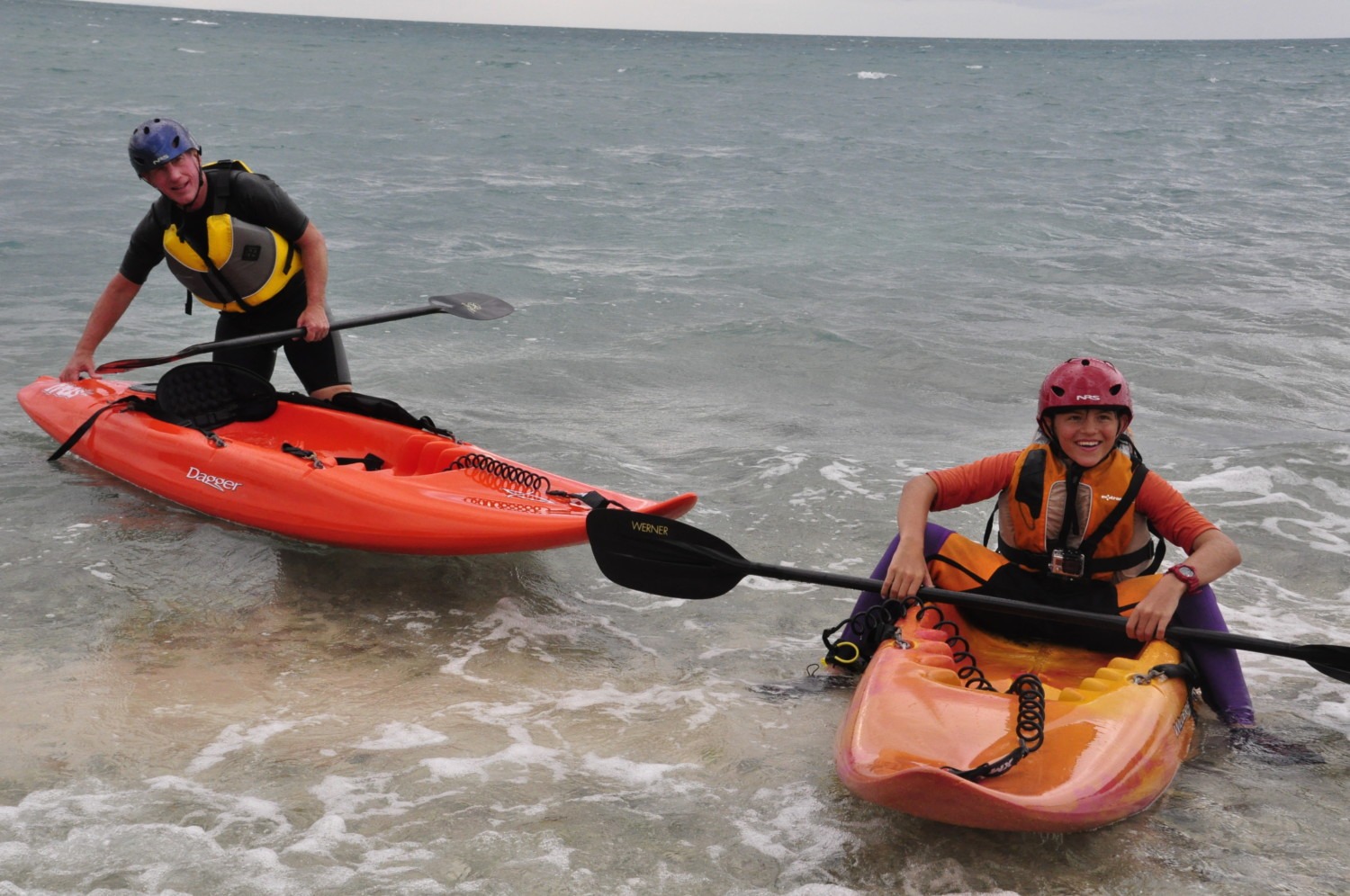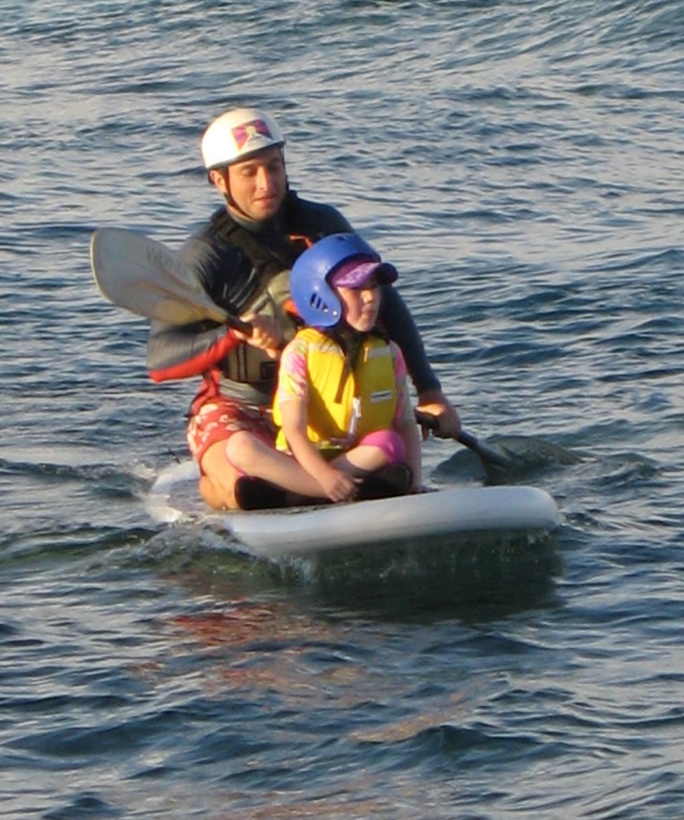 Parents must be fit enough to paddle their young children in a double sea kayak if they plan to go kayaking. Guides cannot do this as they need to be available to rescue guests and they cannot effectively do this from a double kayak. Single parents who wish to kayak alone must travel with another adult or hire a babysitter to supervise their child under 12 years of age while they kayak. Some kids 9 and older (depends on body size and strength) will be able to surf kayak.