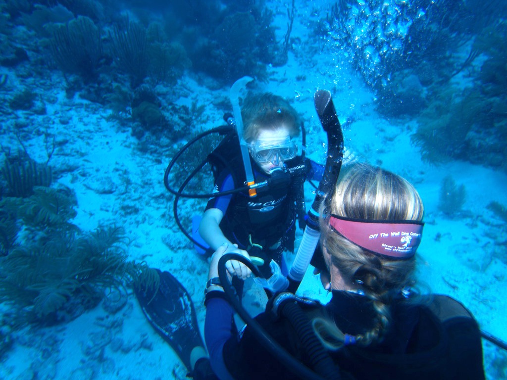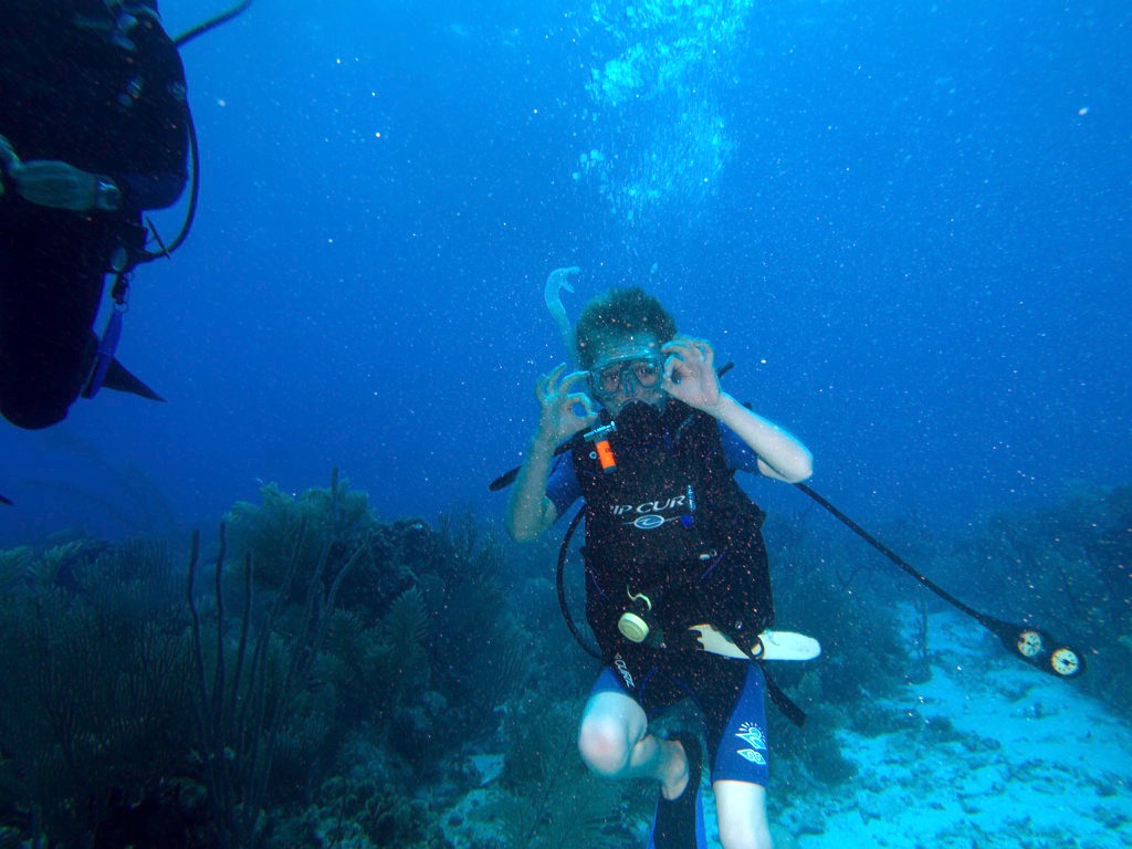 Kids ages 8 and 9 may take the Bubblemaker course which has a 6-foot depth limit and takes one-half day. Kids ages 10 and 11 may be able to dive as a regular diver, this age limit is under the discretion of our Dive Instructor. Kids ages 12 and over may get their PADI certification, or take the one-half day Discover Scuba course if they wish. Non-divers or snorkelers will not be able to join divers on the boat while divers are diving or taking courses.