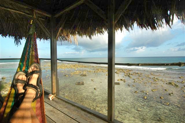 I didn’t even know I had fallen asleep in the hammock, but suddenly I am awakened by an even louder sound than the surf: a storm has blown in and the palms are straining under a stiff wind from the NW behind my cabana. I look over the railing and am greeted with a face-full of fresh water off the roof as a hard rain has also begun, its curtain hidden in the dark and wind. I stumble to bed with a grin, anticipating what this could mean for tomorrow.
