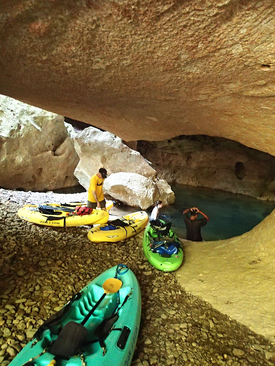 The caves of Belize were sacred to the Mayans, and the Caves Branch River corridor is no exception. Mayan artifacts are found inscribed into the cave formations along the river. We run the Caves Branch as part of our Belize Adventure Week eight day trip. This full-week adventure tour combines kayaking through caves with other activities such as whitewater kayaking, waterfall rappelling, ziplining, hiking to a Mayan ruin, and three days on our private island for sea kayaking, snorkeling, scuba diving, kitesurfing, windsurfing, kayak surfing, Belize permit fishing, kayak fishing, paddleboarding, and board surfing.