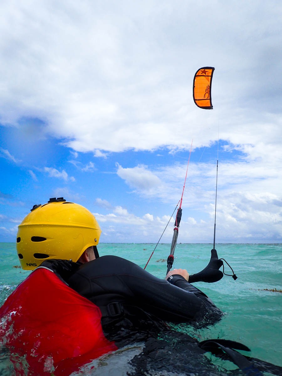 We have an excellent beach launch site into the lagoon with plenty of space free from obstacles. In addition, our surf break is very kite friendly and immediately accessible off the front point of the island, and it normally sees a cross break wind that is perfect for setting up jumps.The open sea provides unlimited reaches in large swells, while the lagoon is perfect for high speed, smooth water runs. Although the lagoon has many patch reef obstacles, there is plenty of room to avoid them and we commonly run out on 3 mile reaches.